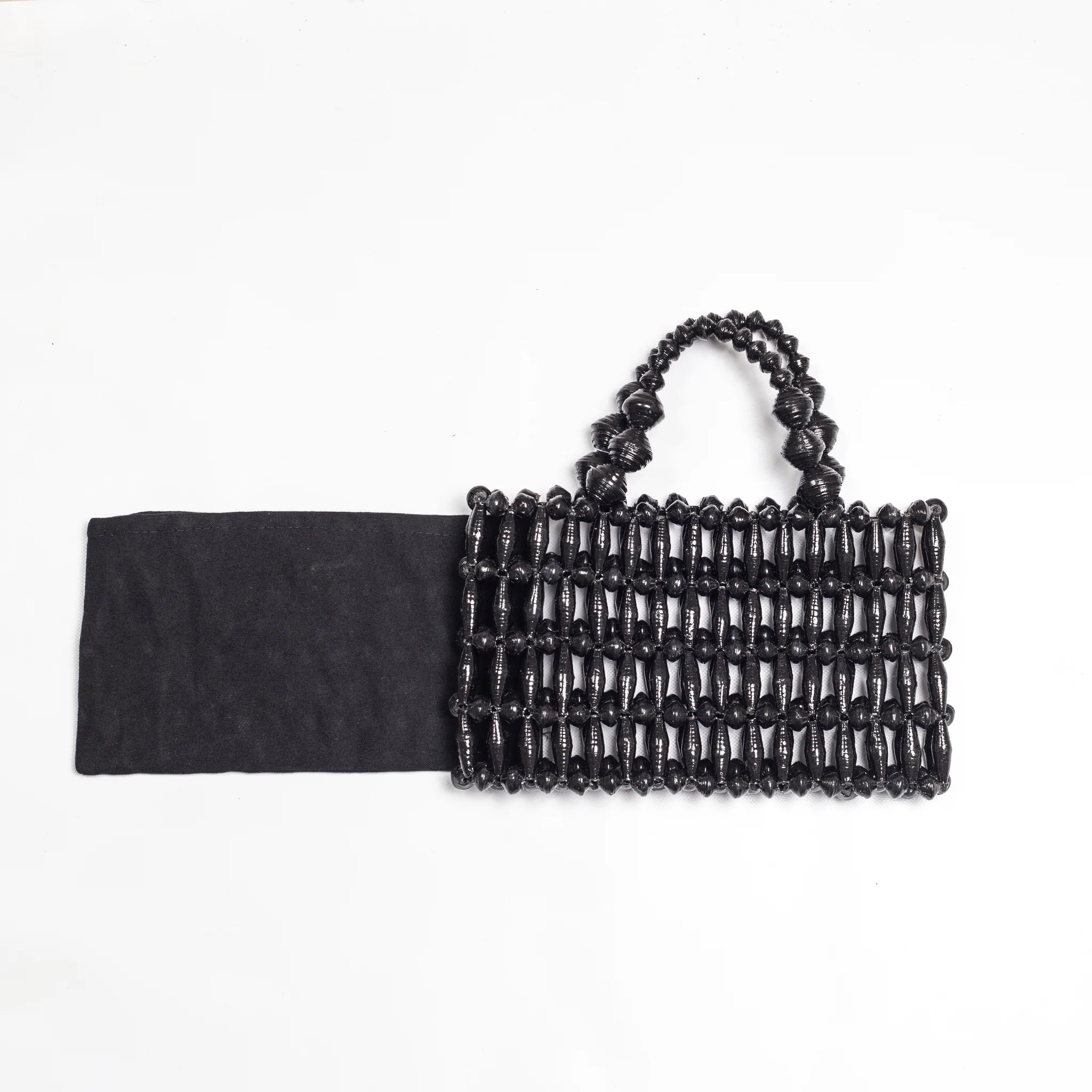o חומר גלם טבעי ומקומי- כל התיקים שלנו מיוצרים בעבודת יד אישית ועדינה מחרוזים מנייר מגולגל ומבדים מקומיים. החרוזים עוברים תהליך ציפוי בלקה שקופה, מיוחדת ועמידה. כדי להגיע לצבעוניות הרצויה, הנשים משתמשות בנייר בצבע הרצוי, או צובעות את הנייר עם הצבע הרצוי לפני גזירה, גלגול ויצירת החרוז.